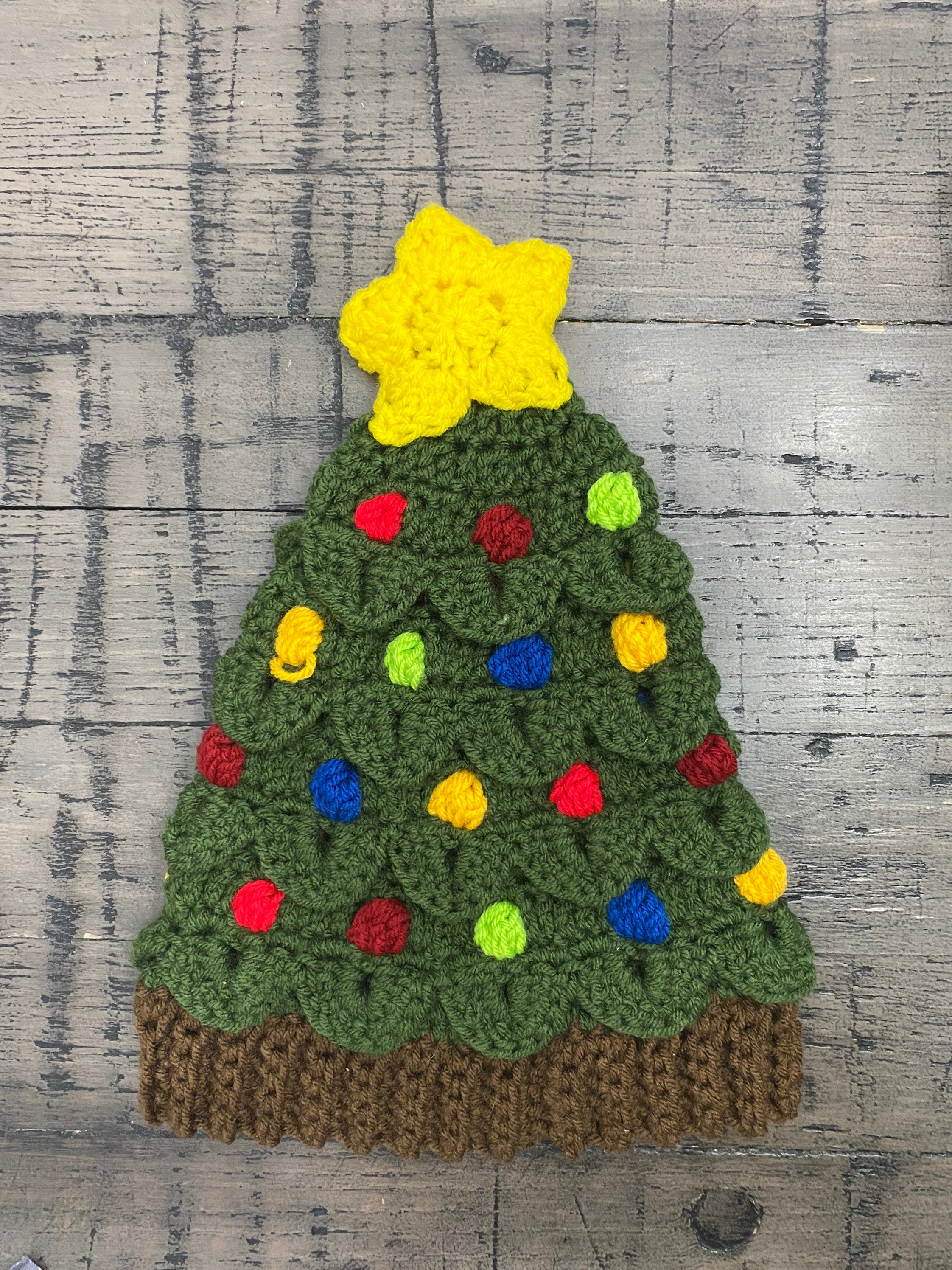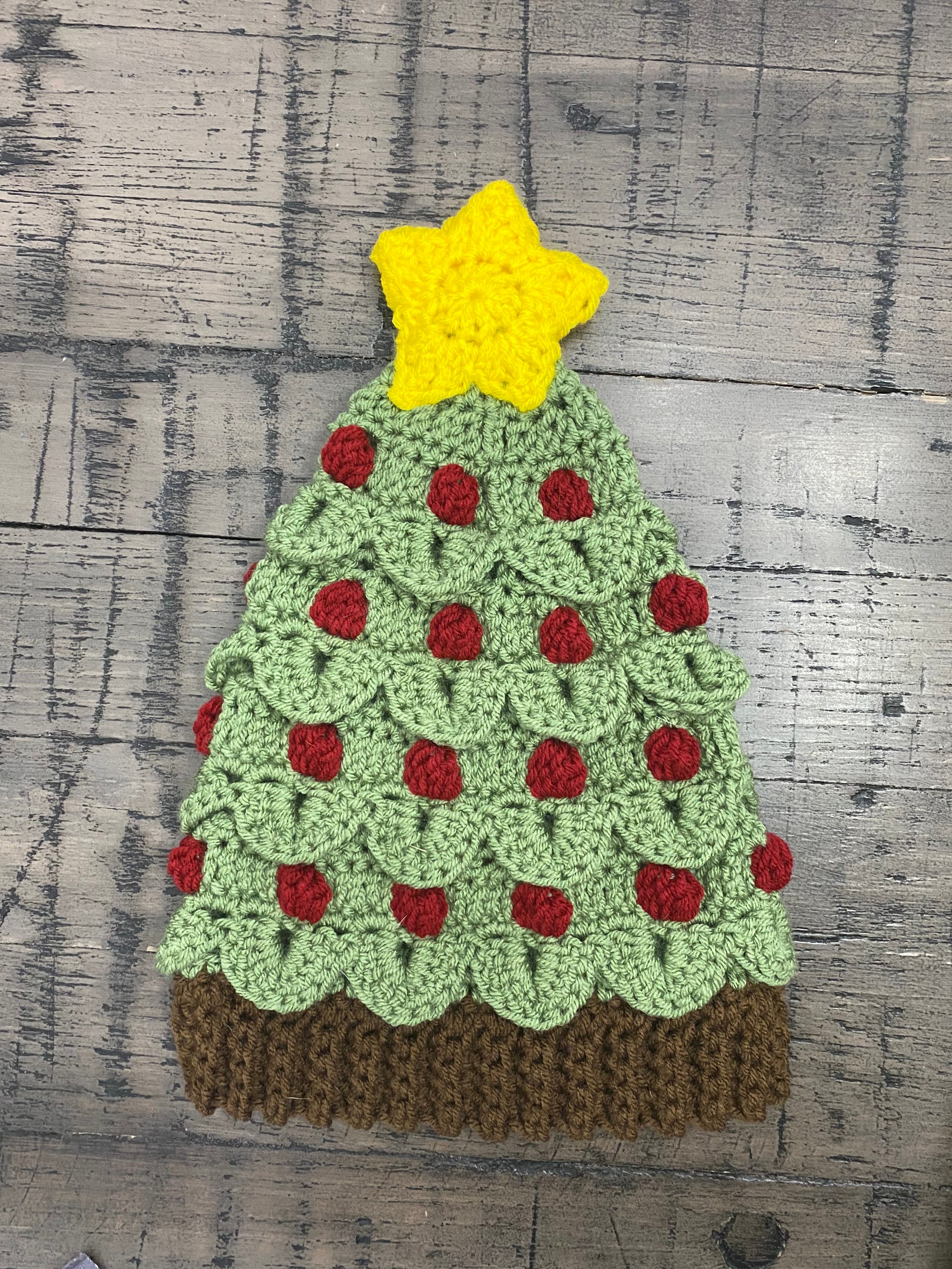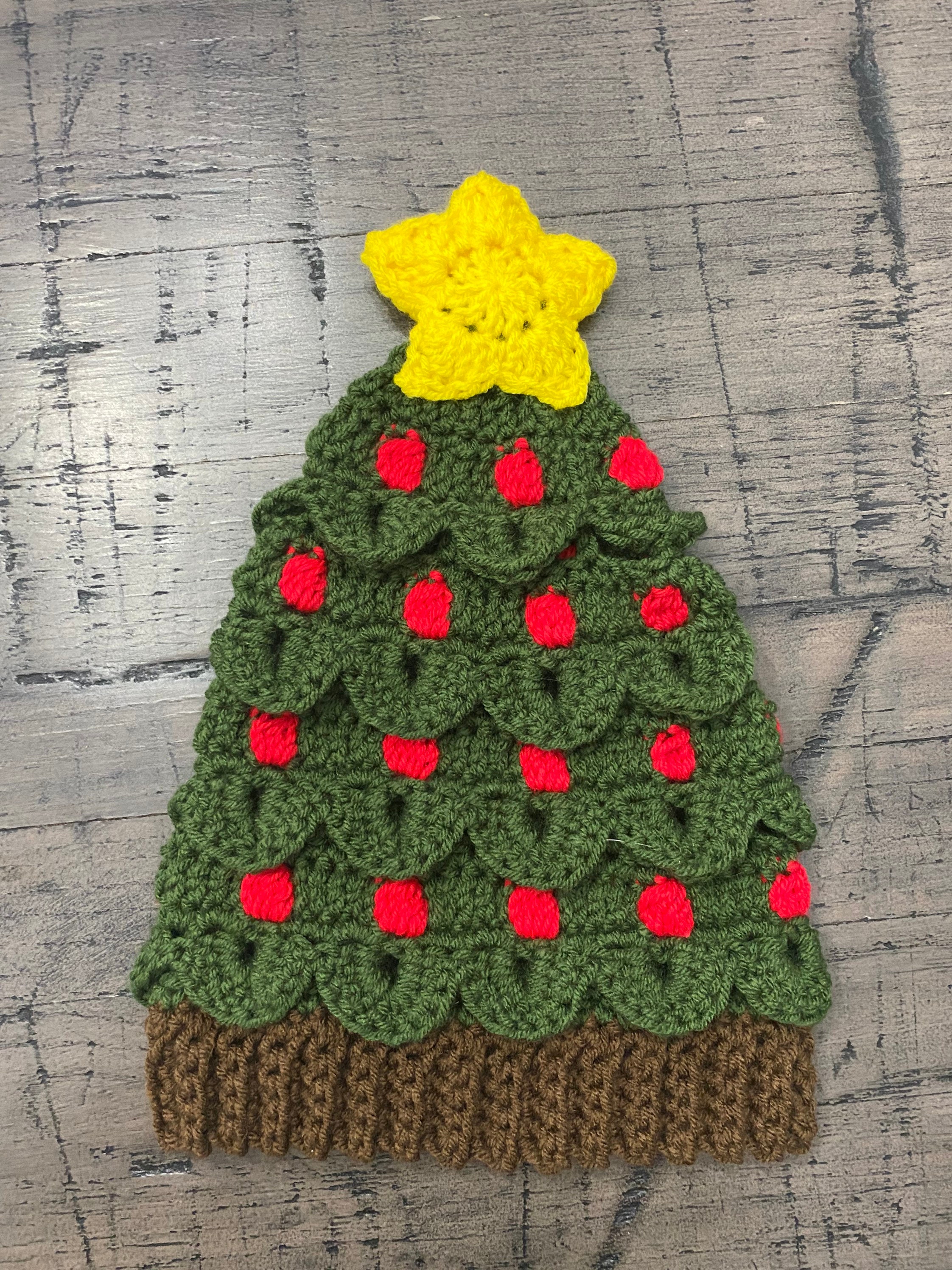 The PDFs for detailed instructions and pictures to help you make your very own Christmas tree hat with ornaments and a star on top is available for immediate download after purchase. It has basic crochet stitches, uses a size I-9 hook and medium weight yarn. It is a forgiving pattern so missing a stitch or two wouldn't be noticeable.