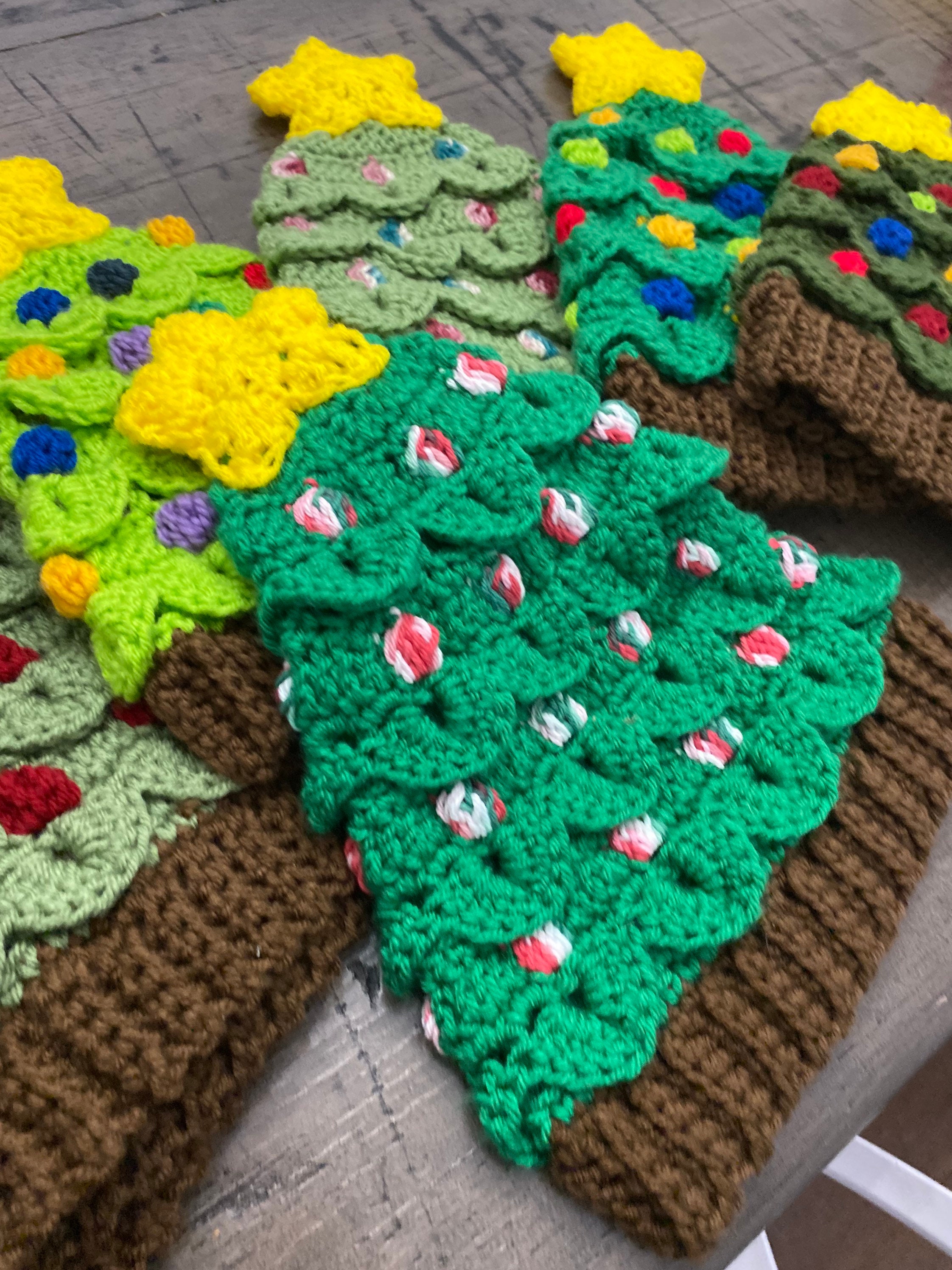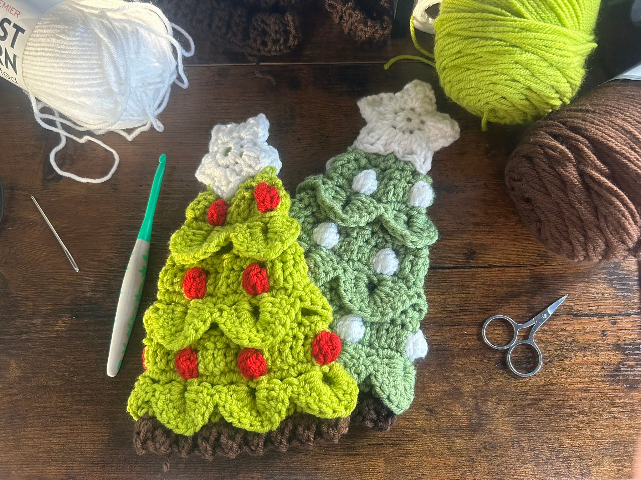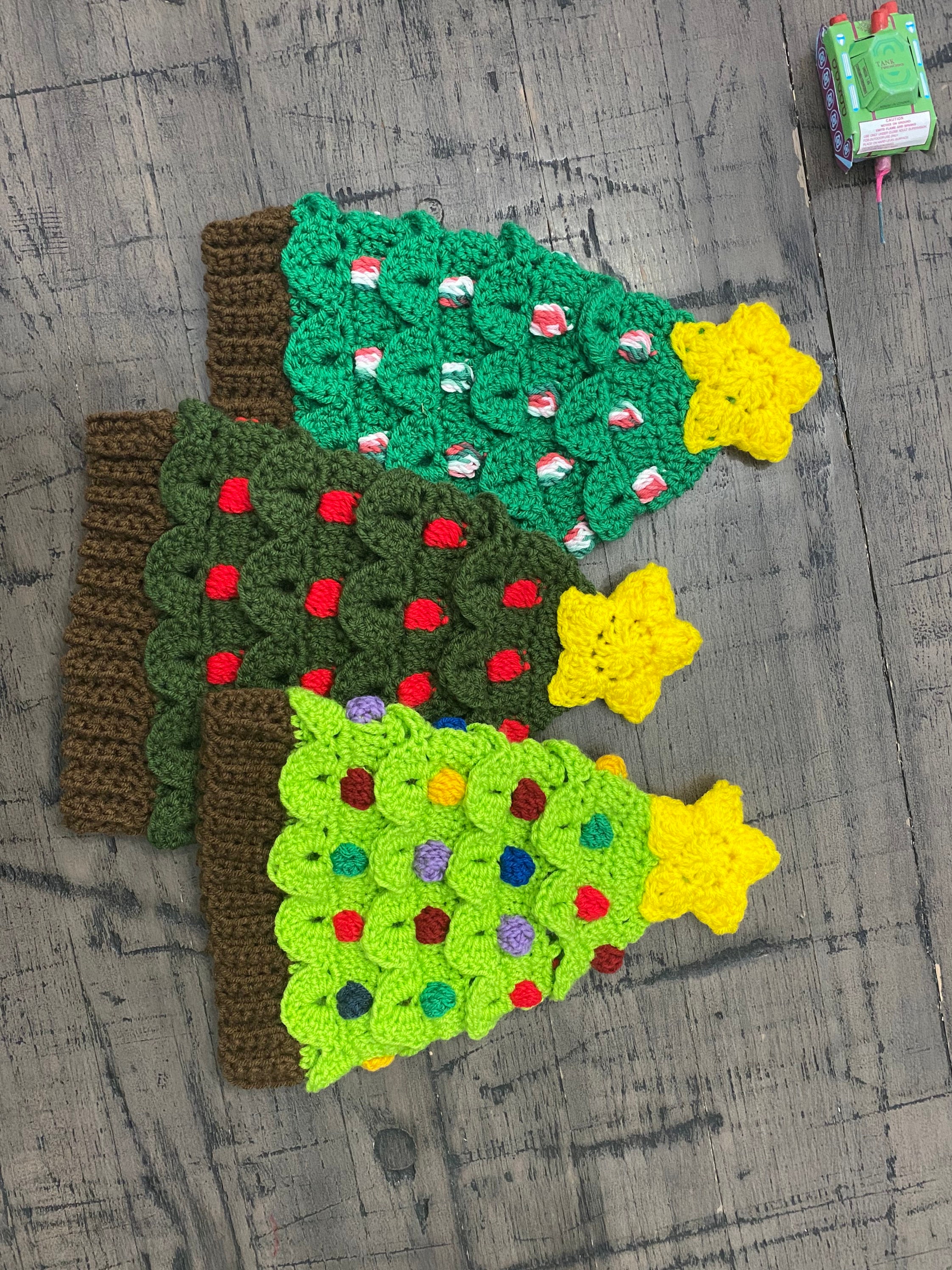 The PDFs for detailed instructions and pictures to help you make your very own Christmas tree hat with ornaments and a star on top is available for immediate download after purchase. It has basic crochet stitches, uses a size I-9 hook and medium weight yarn. It is a forgiving pattern so missing a stitch or two wouldn't be noticeable.