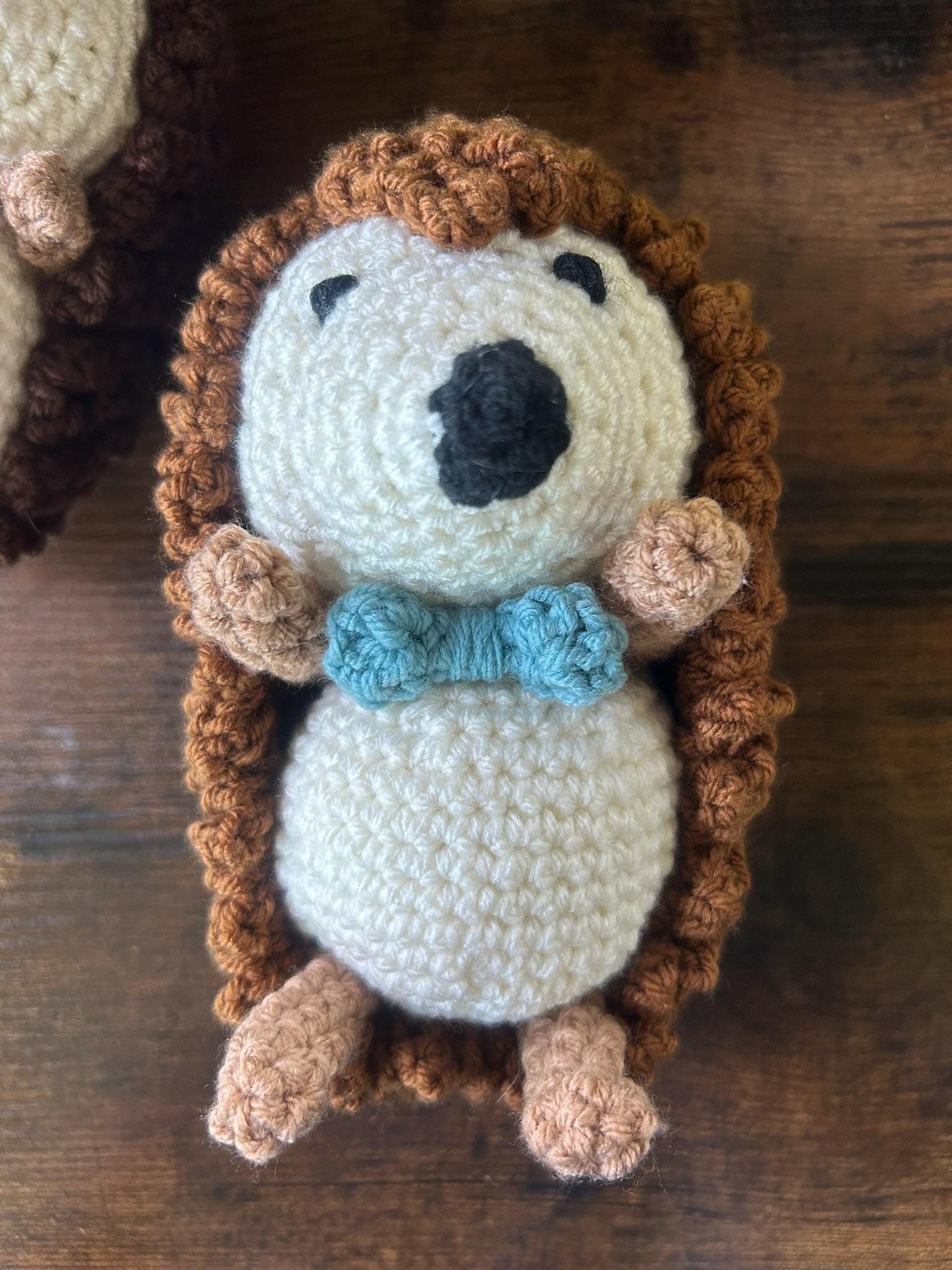 Crochet your own little stuffed hedgehog! This adorable little guy will be about 6-7" tall and about 4" wide.