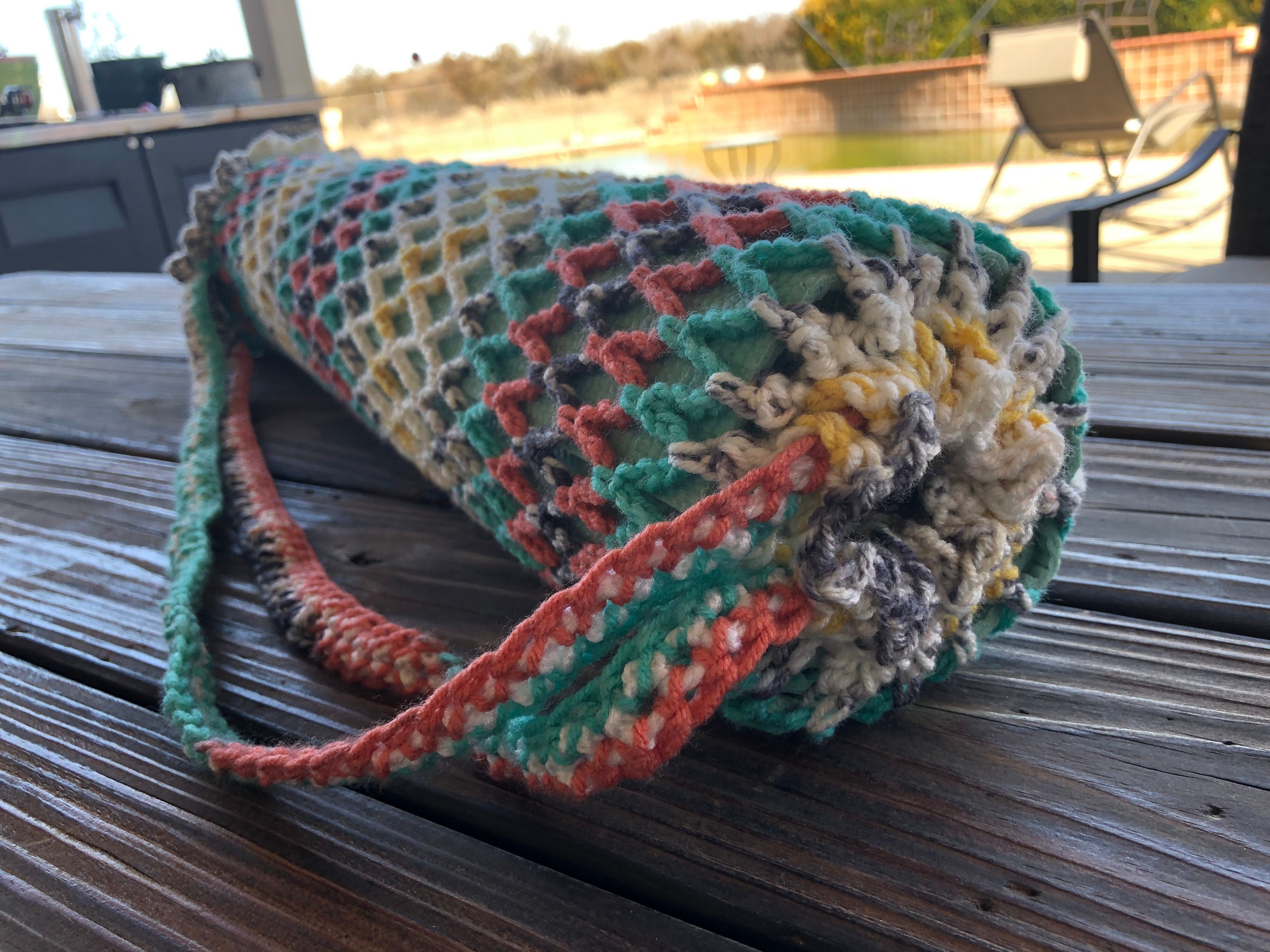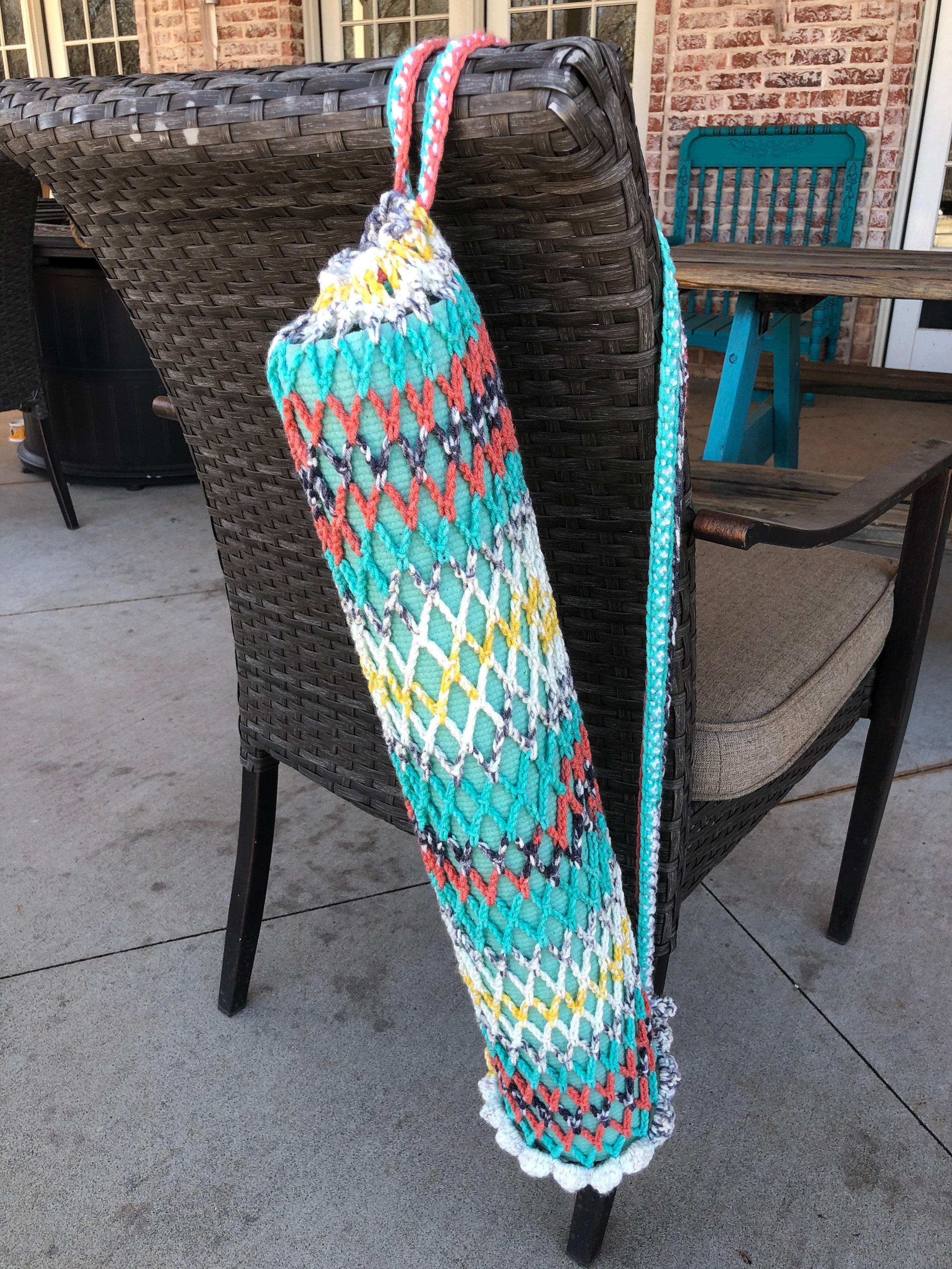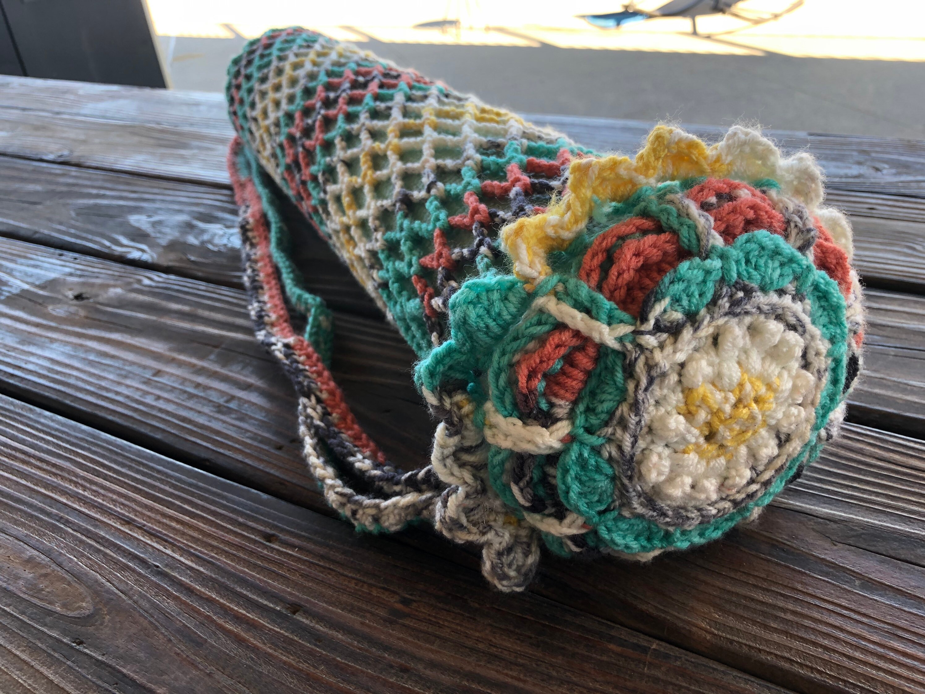 This crochet pattern will help you create a very detailed and beautiful bag for your yoga mat that you’re sure to get compliments on!