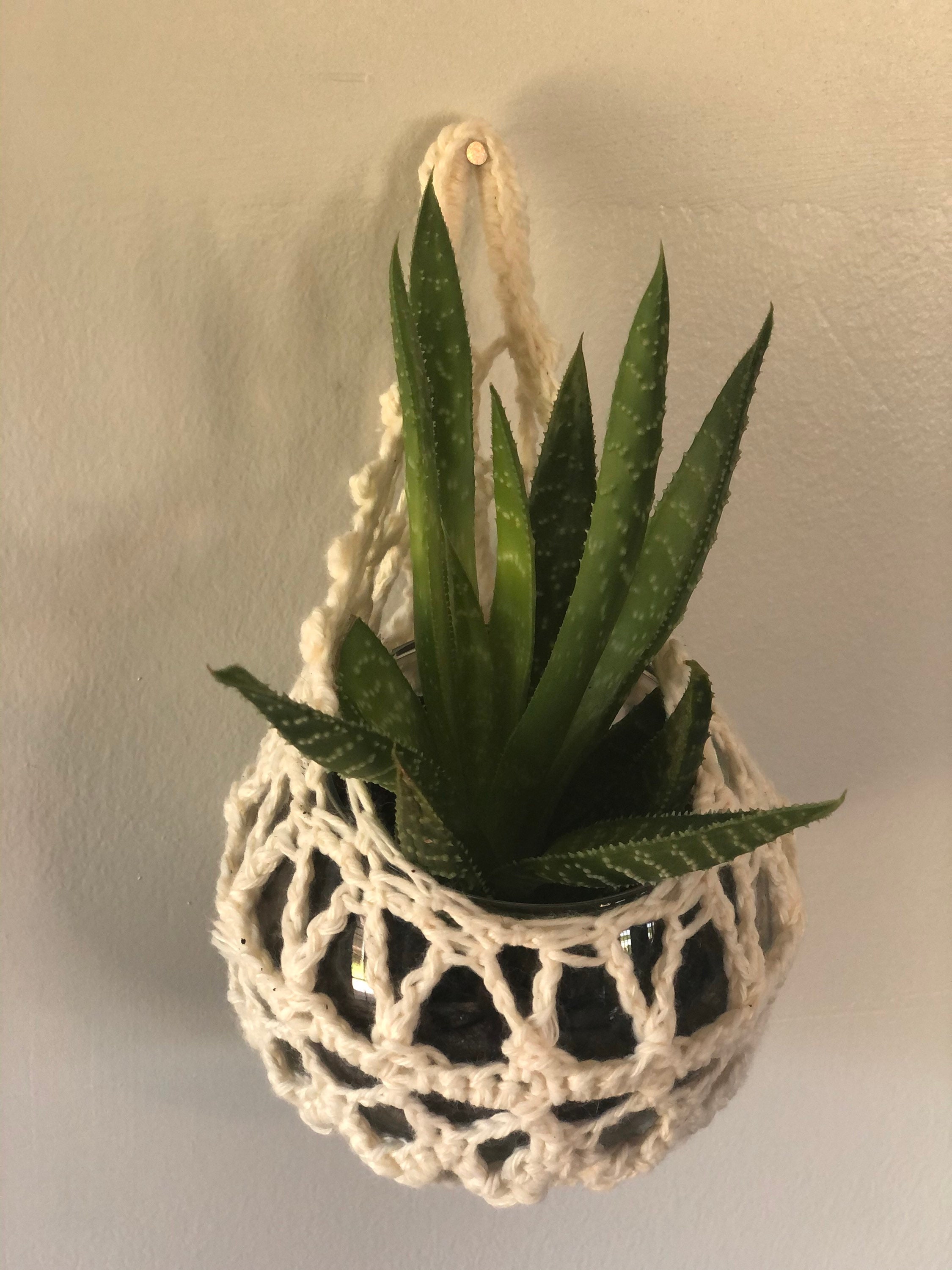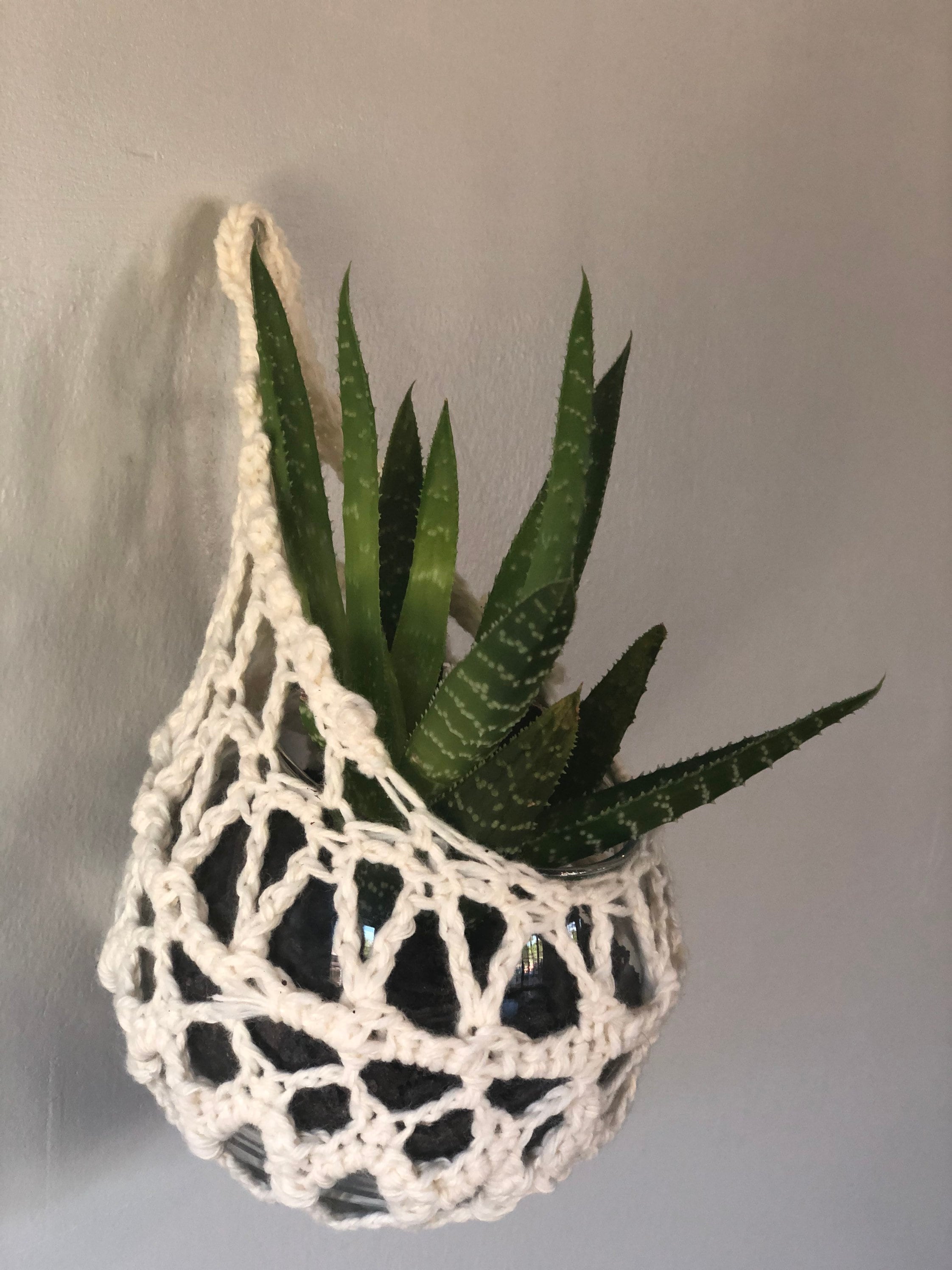 plant holder such as a pot or a sphere about 5-6 inches in diameter (the pattern does get tighter towards the top so if the holder is larger, it might need to be inserted into the holder prior to finishing the last rows)